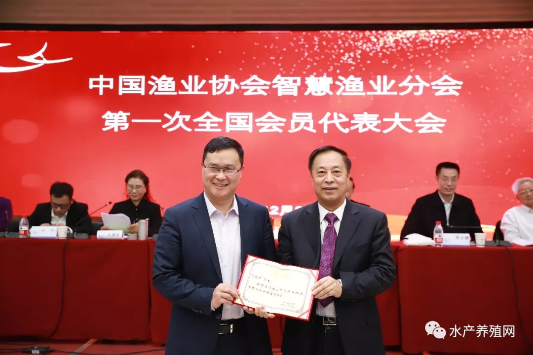 中國漁業(yè)協(xié)會會長趙興武、副會長林毅為理事頒發(fā)證書