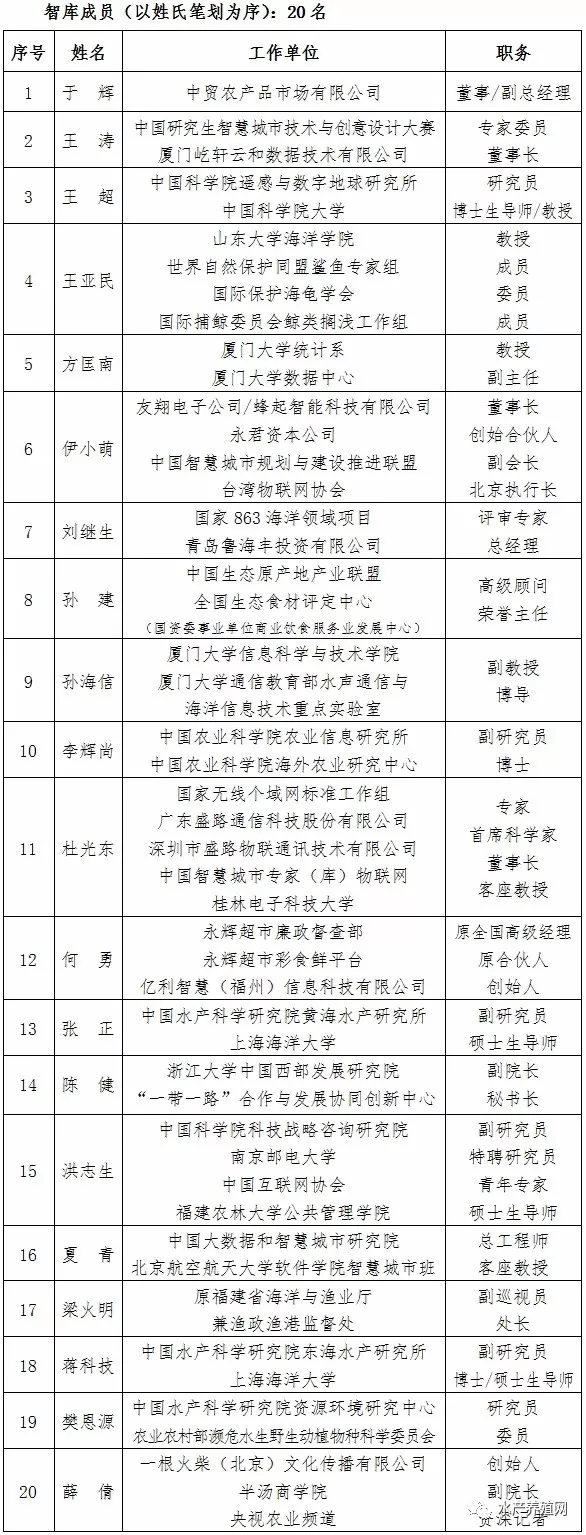 中國漁業(yè)協(xié)會智慧漁業(yè)分會智庫成員