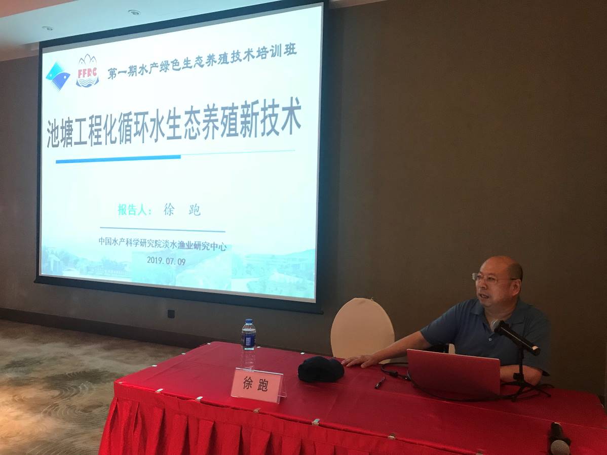 為貫徹落實(shí)農(nóng)業(yè)農(nóng)村部等十部委印發(fā)的《關(guān)于加快推進(jìn)水產(chǎn)養(yǎng)殖業(yè)綠色發(fā)展的若干意見》文件,推廣水產(chǎn)綠色生態(tài)養(yǎng)殖新技術(shù)和新模式,2019年7月8日至13日,由中國(guó)漁業(yè)協(xié)會(huì)和中國(guó)城鄉(xiāng)發(fā)展國(guó)際交流協(xié)會(huì)主辦,中國(guó)水產(chǎn)科學(xué)研究院淡水漁業(yè)研究中心和中信格義循環(huán)經(jīng)濟(jì)有限公司承辦的首期“水產(chǎn)綠色生態(tài)養(yǎng)殖技術(shù)”培訓(xùn)班在無錫順利舉辦。來自江蘇、山東、天津、安徽等十省市的80余名學(xué)員參加培訓(xùn)。中國(guó)漁業(yè)協(xié)會(huì)常務(wù)副會(huì)長(zhǎng)兼秘書長(zhǎng)林毅、中國(guó)城鄉(xiāng)發(fā)展國(guó)際交流協(xié)會(huì)副秘書長(zhǎng)魏韜、中國(guó)水產(chǎn)科學(xué)研究院淡水漁業(yè)研究中心主任徐跑、中信格義循環(huán)經(jīng)濟(jì)有限公司總經(jīng)理鄒海平出席開班儀式。徐跑主任在開班儀式上致歡迎辭。